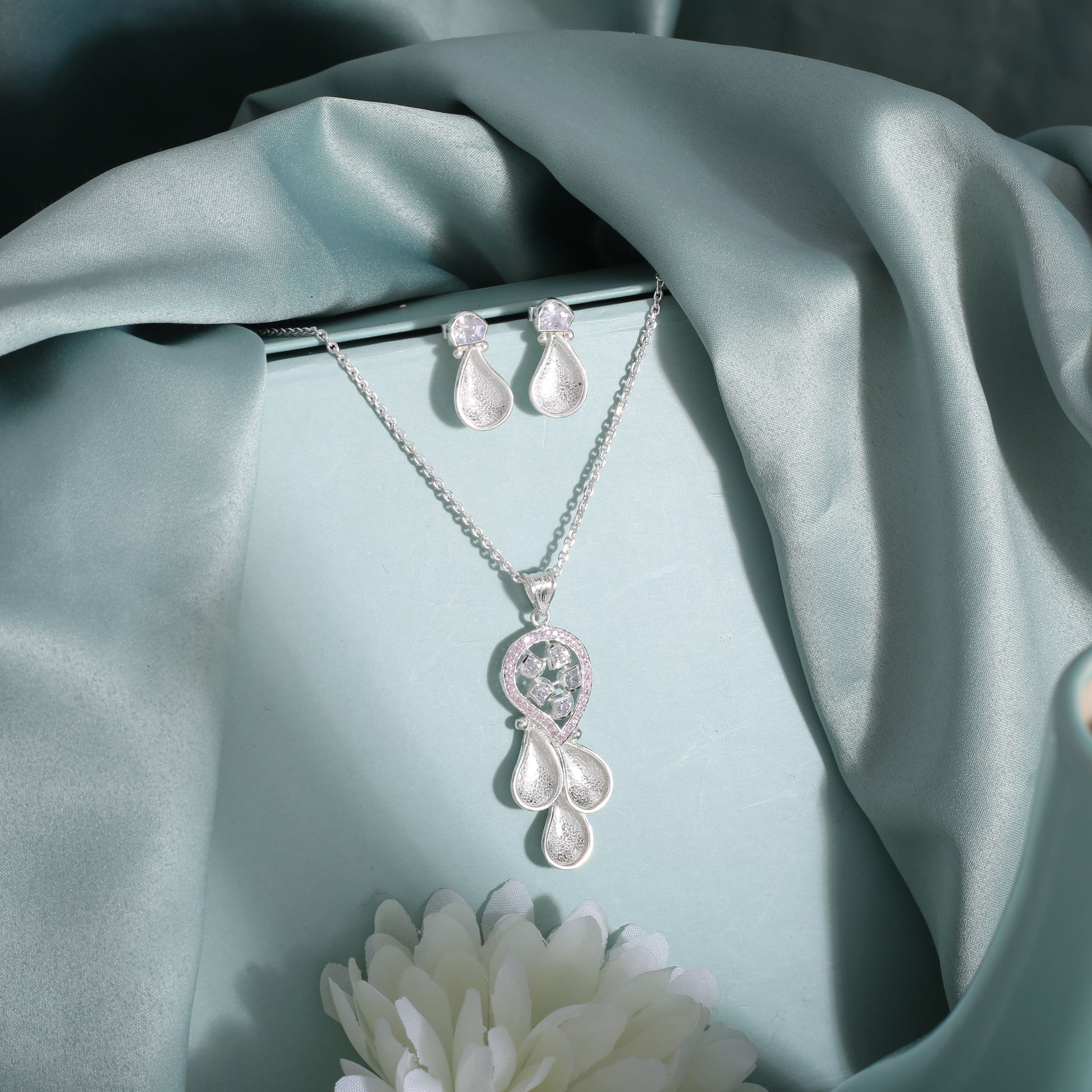 This Elegant Necklace Set Includes a Pendant, Earrings, and a 15-Inch Chain with a 2.5-Inch Adjustable Lock. Handcrafted in Pure 925% Silver and Made in India, Each Piece Reflects Exquisite Craftsmanship and Elegant Detailing. Every Design is Well Stamped with 925 Silver and SITARA, Offering Authenticity and Lasting Quality. Perfect for Both Party Wear and Casual Wear, Delivering a Simple yet Stylish Look. Skin-Friendly and Finished with Lifetime Plating for Long-Lasting Brilliance.