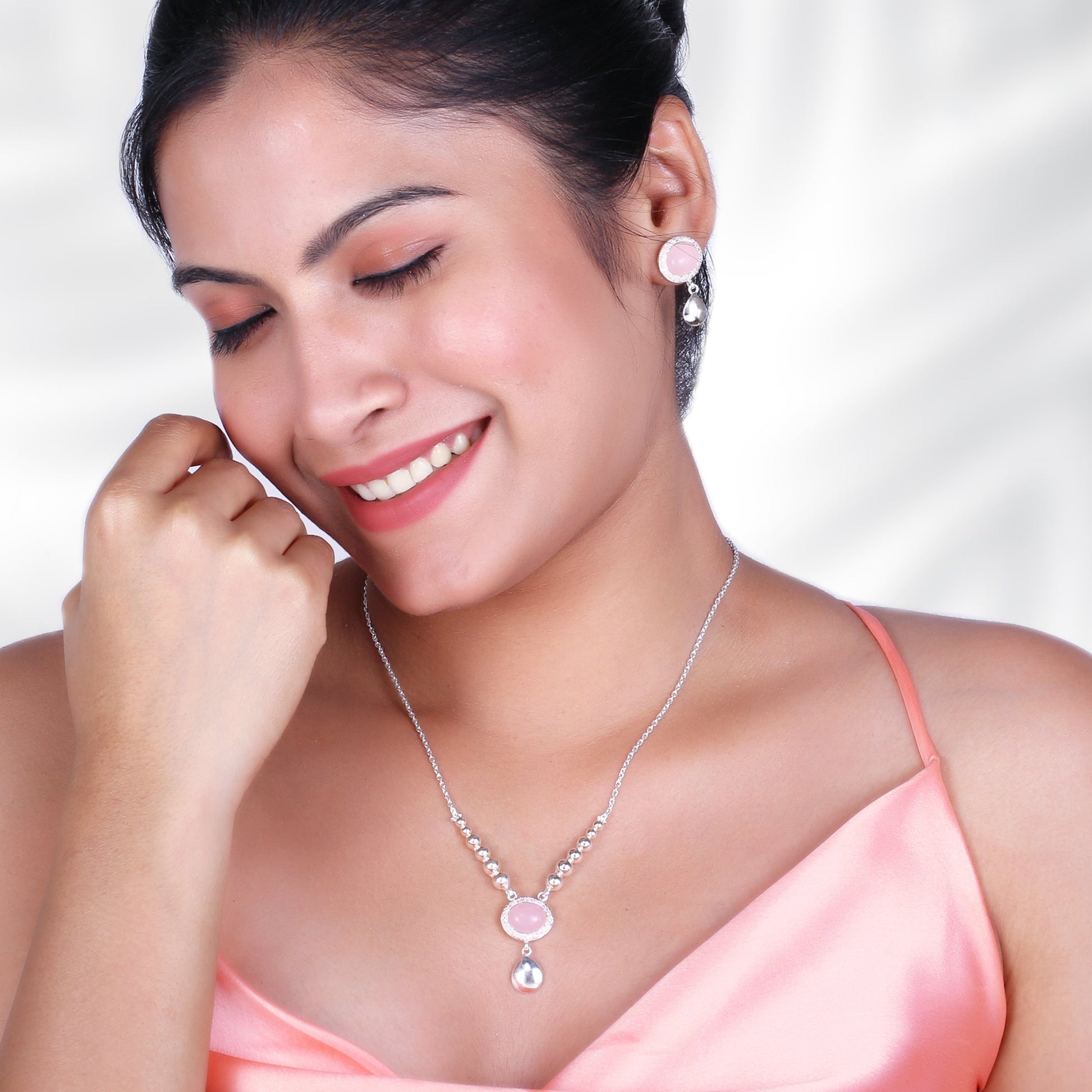 This Elegant Necklace Set Includes a Pendant, Earrings, and a 15-Inch Chain with a 2.5-Inch Adjustable Lock. Handcrafted in Pure 925% Silver and Made in India, Each Piece Showcases Graceful Craftsmanship and Delicate Detailing. Every Design is Well Stamped with 925 Silver and SITARA, Symbolizing Authenticity and Lasting Quality. Ideal for Both Party Wear and Casual Wear, Offering a Simple yet Stylish Look. Skin-Friendly and Finished with Lifetime Plating for Enduring Elegance.