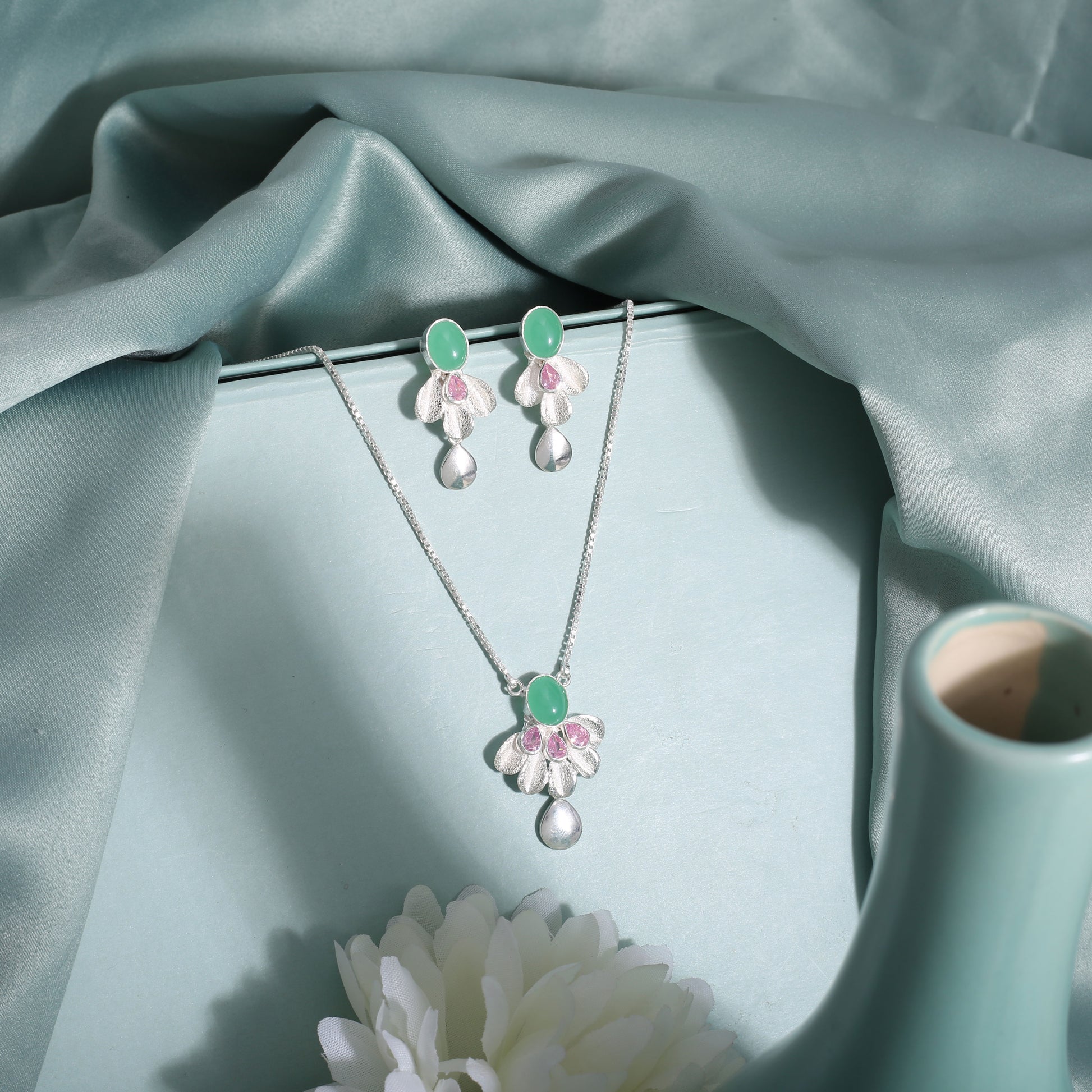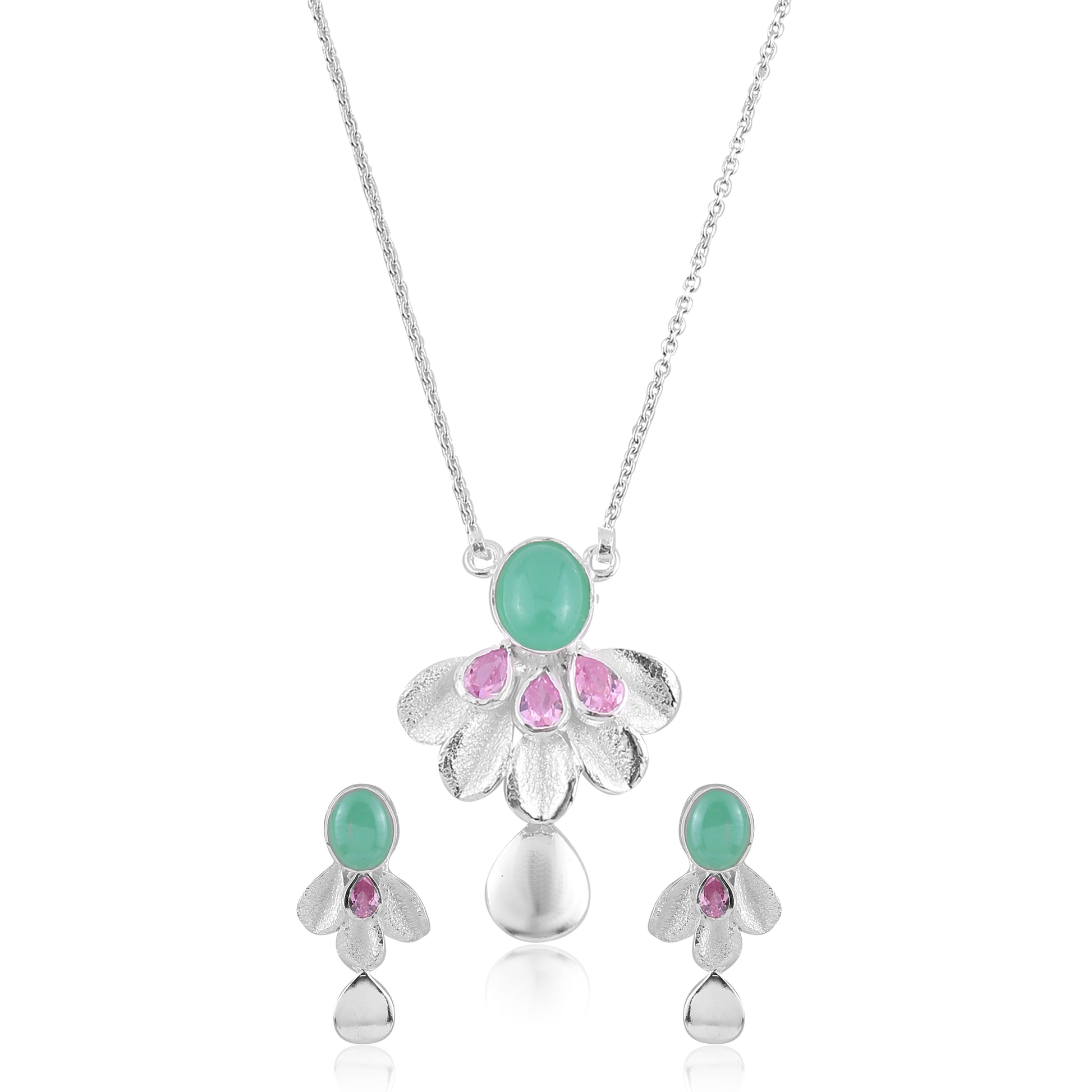 This Elegant Necklace Set Includes a Pendant, Earrings, and a 15-Inch Chain with a 2.5-Inch Adjustable Lock. Handcrafted in Pure 925% Silver and Made in India, Each Piece Showcases Timeless Craftsmanship and Elegant Detailing. Every Design is Well Stamped with 925 Silver and SITARA, Reflecting Authenticity and Fine Quality. Ideal for Both Party Wear and Casual Wear, Offering a Simple yet Stylish Look. Skin-Friendly and Finished with Lifetime Plating for Lasting Brilliance.
