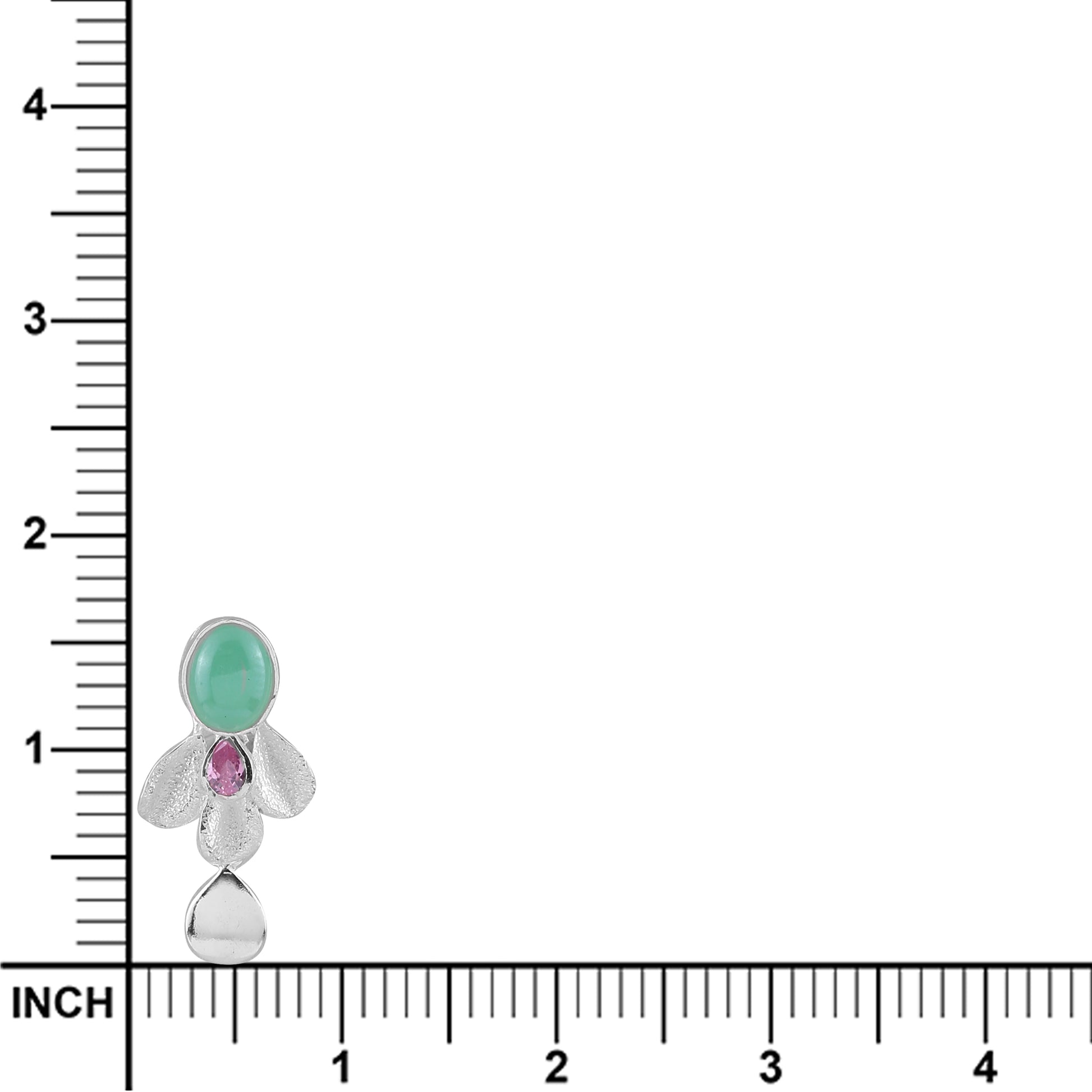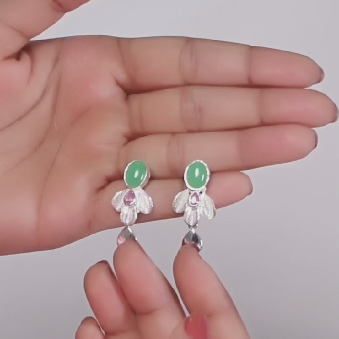 Gross Weight: 13.500 Grams. Embellished with a Striking Russian Green Stone Paired with a Soft Pink CZ Stone, Creating a Delicate Balance of Freshness and Feminine Charm.