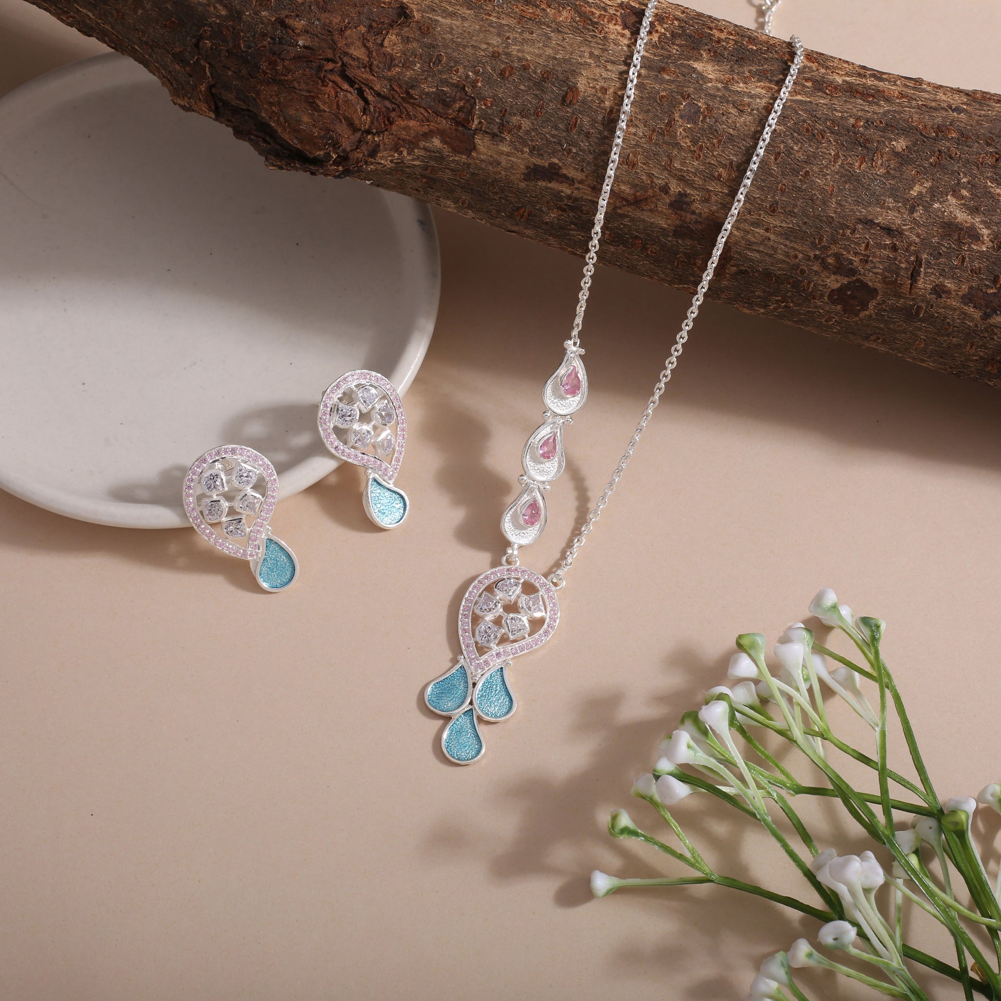 This Elegant Necklace Set Includes a Pendant, Earrings, and a 15-Inch Chain with a 2.5-Inch Adjustable Lock. Handcrafted in Pure 925% Silver and Made in India, Each Piece Reflects Exquisite Craftsmanship and Modern Elegance. Every Design is Well Stamped with 925 Silver and SITARA, Representing Authenticity and Lasting Quality. Ideal for Both Party Wear and Casual Wear, Offering a Simple yet Stylish Look. Skin-Friendly and Finished with Lifetime Plating for Timeless Shine.