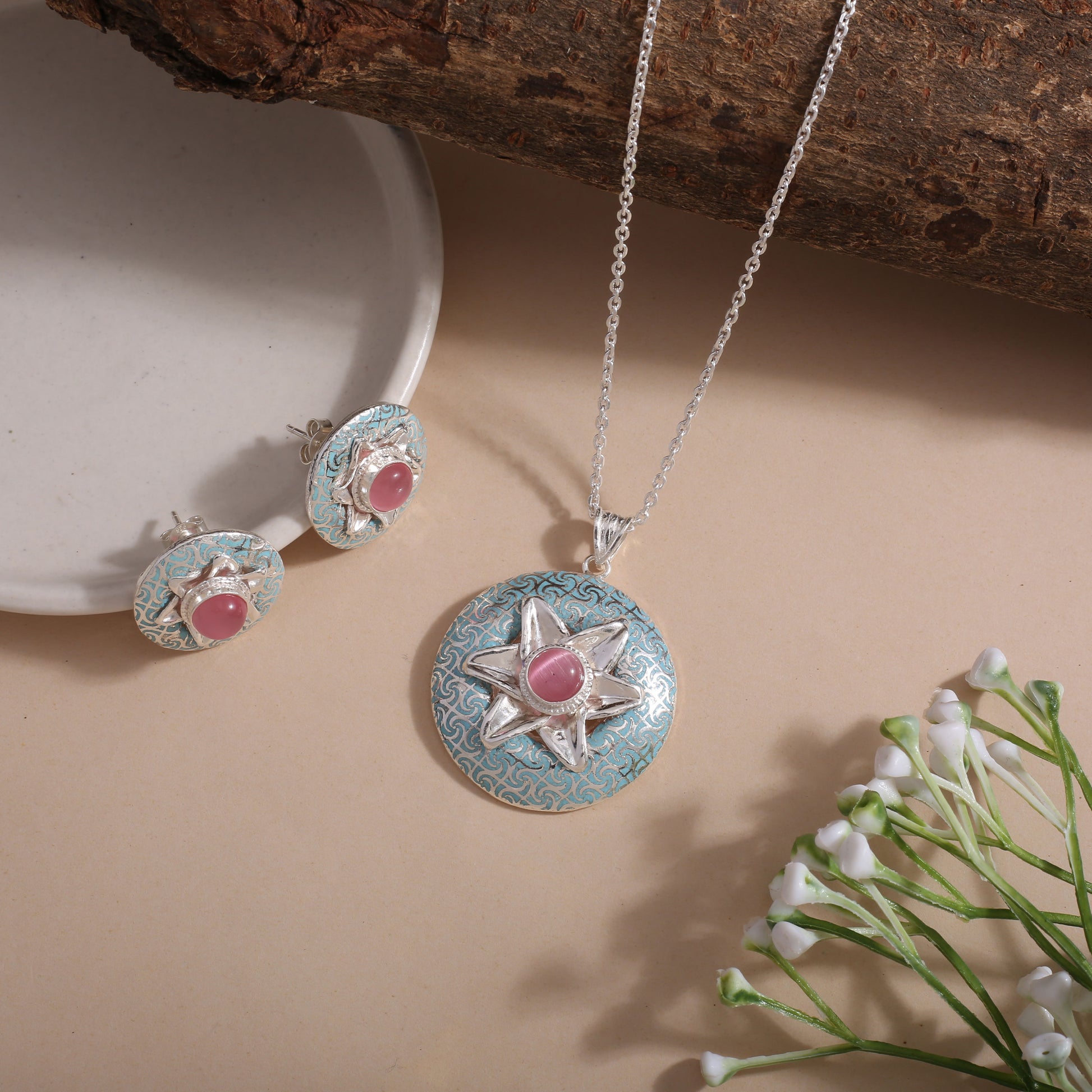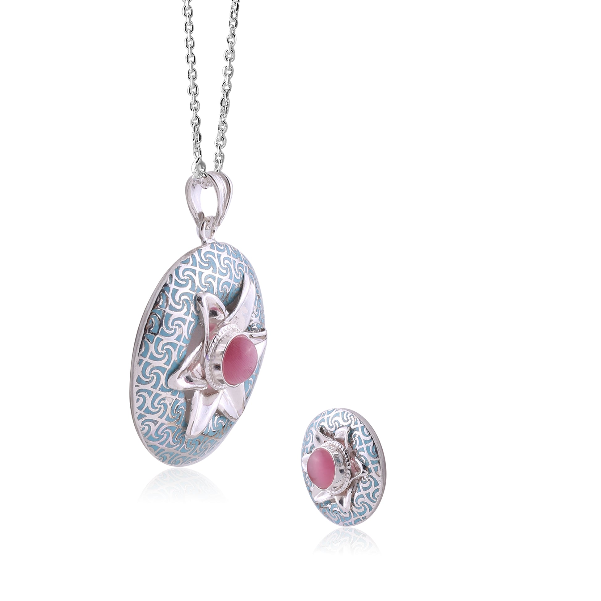 This Elegant Necklace Set Includes a Pendant, Earrings, and a 15-Inch Chain with a 2.5-Inch Adjustable Lock. Handcrafted in Pure 925% Silver and Made in India, Each Piece Embodies Fine Craftsmanship and Rich Cultural Detailing. Every Design is Well Stamped with 925 Silver and SITARA, Ensuring Authenticity and Trusted Quality. Ideal for Both Party Wear and Casual Wear, Offering a Simple yet Stylish Look. Skin-Friendly and Finished with Lifetime Plating for Enduring Elegance.