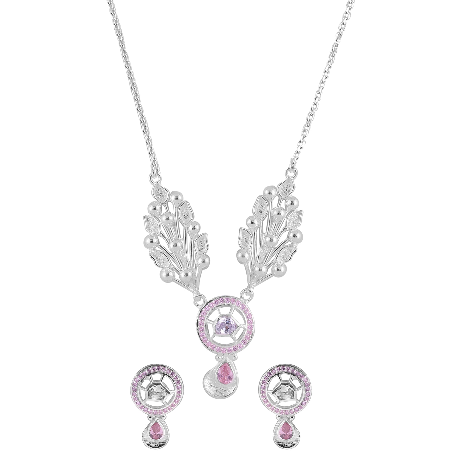 This Elegant Necklace Set Includes a Pendant, Earrings, and a 15-Inch Chain with a 2.5-Inch Adjustable Lock. Handcrafted in Pure 925% Silver and Made in India, Each Piece Captures the Essence of Timeless Craftsmanship and Subtle Luxury. Every Design is Well Stamped with 925 Silver and SITARA, Ensuring Authenticity and Premium Quality. Ideal for Both Party Wear and Casual Wear, Offering a Simple yet Stylish Look. Skin-Friendly and Finished with Lifetime Plating for Lasting Radiance.