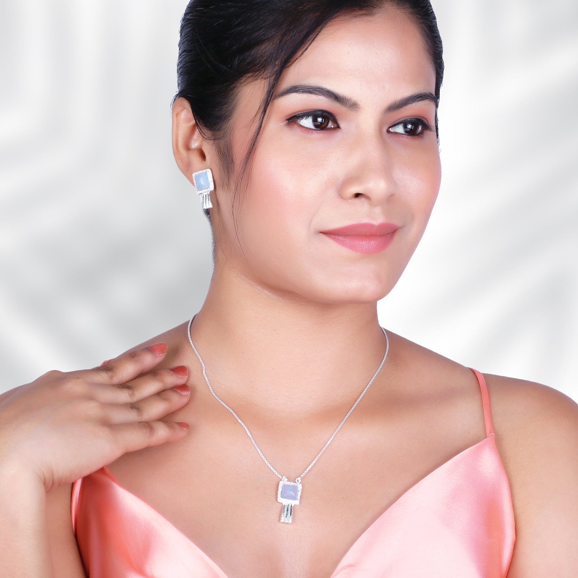 This Elegant Necklace Set Includes a Pendant, Earrings, and a 15-Inch Chain with a 2.5-Inch Adjustable Lock. Handcrafted in Pure 925% Silver and Made in India, Each Piece Showcases Fine Craftsmanship and Attention to Detail. Every Design is Well Stamped with 925 Silver and SITARA, Representing Authenticity and Quality. Perfect for Both Party Wear and Casual Wear, Offering a Simple yet Stylish Look. Skin-Friendly and Finished with Lifetime Plating for Long-Lasting Brilliance.