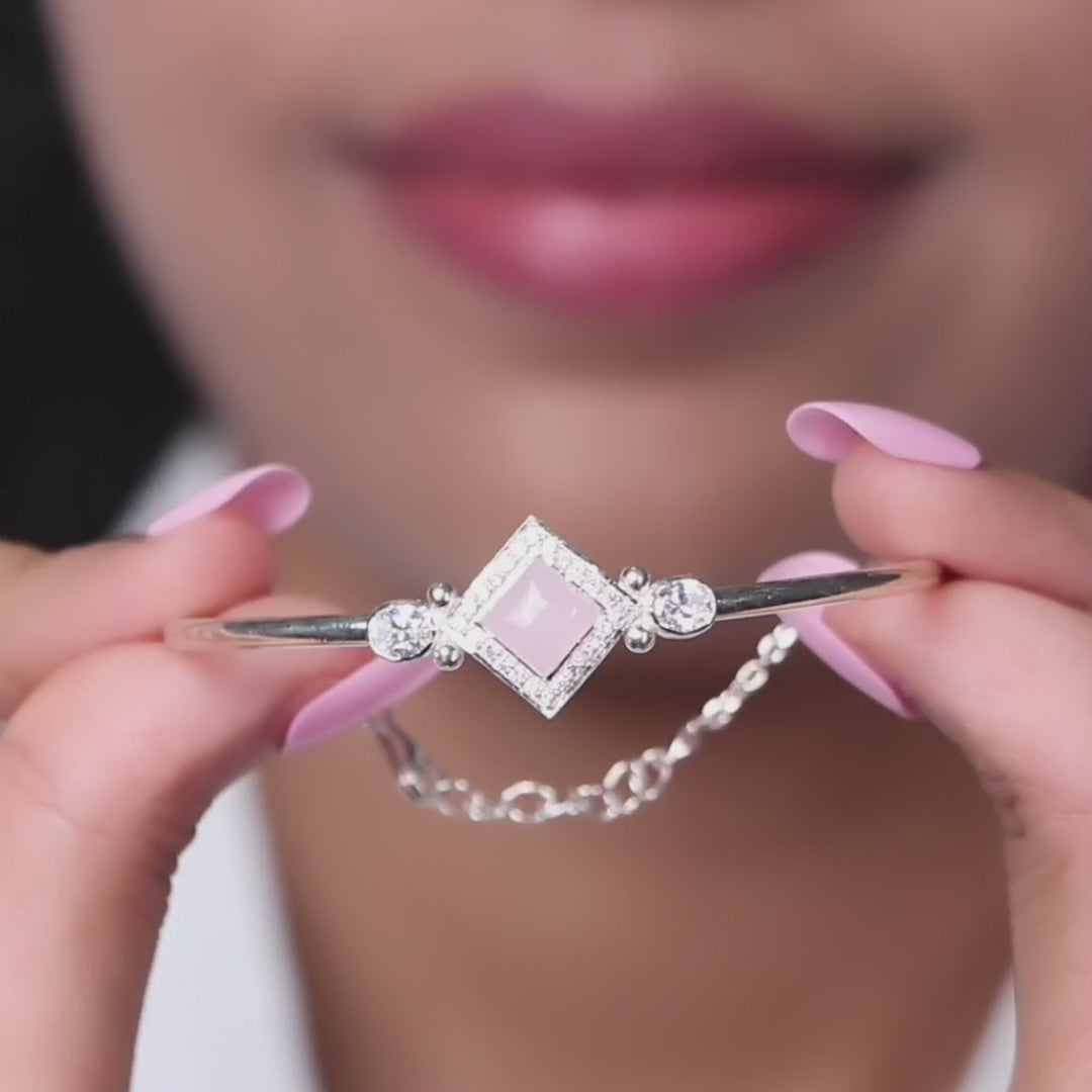 Soft, elegant, and timeless, the Baby Pink Stone Bracelet is a delicate expression of grace and femininity. Featuring a stunning baby pink gemstone at its heart, this bracelet radiates a gentle charm, evoking the beauty of blooming petals. The sleek metal setting, adorned with subtle diamond accents, adds a refined sparkle, making it a perfect blend of sophistication and romance.