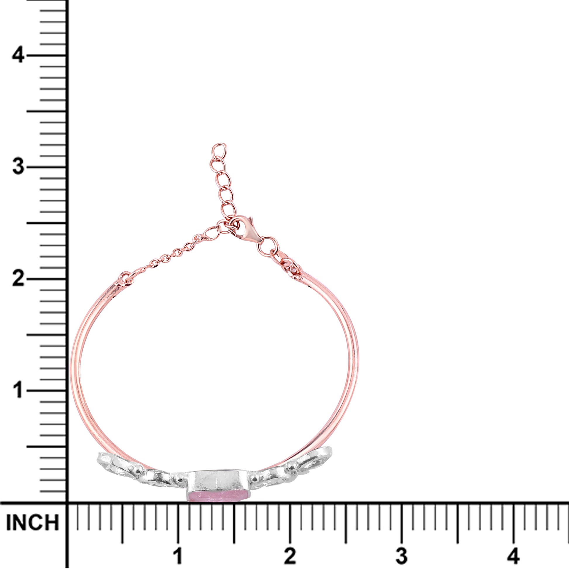 Add a graceful glow to your ensemble with the Blush Radiance Bracelet. Featuring a radiant Rose Gold,This bracelet is adorned with a captivating soft pink centrepiece surrounded by sparkling crystal accents. Its gentle color palette and refined design make it the perfect choice for those who appreciate understated elegance. Whether you're dressing up for an occasion or adding a touch of sophistication to everyday wear, this bracelet effortlessly elevates your style. An adjustable chain ensures a secure and comfortable fit.