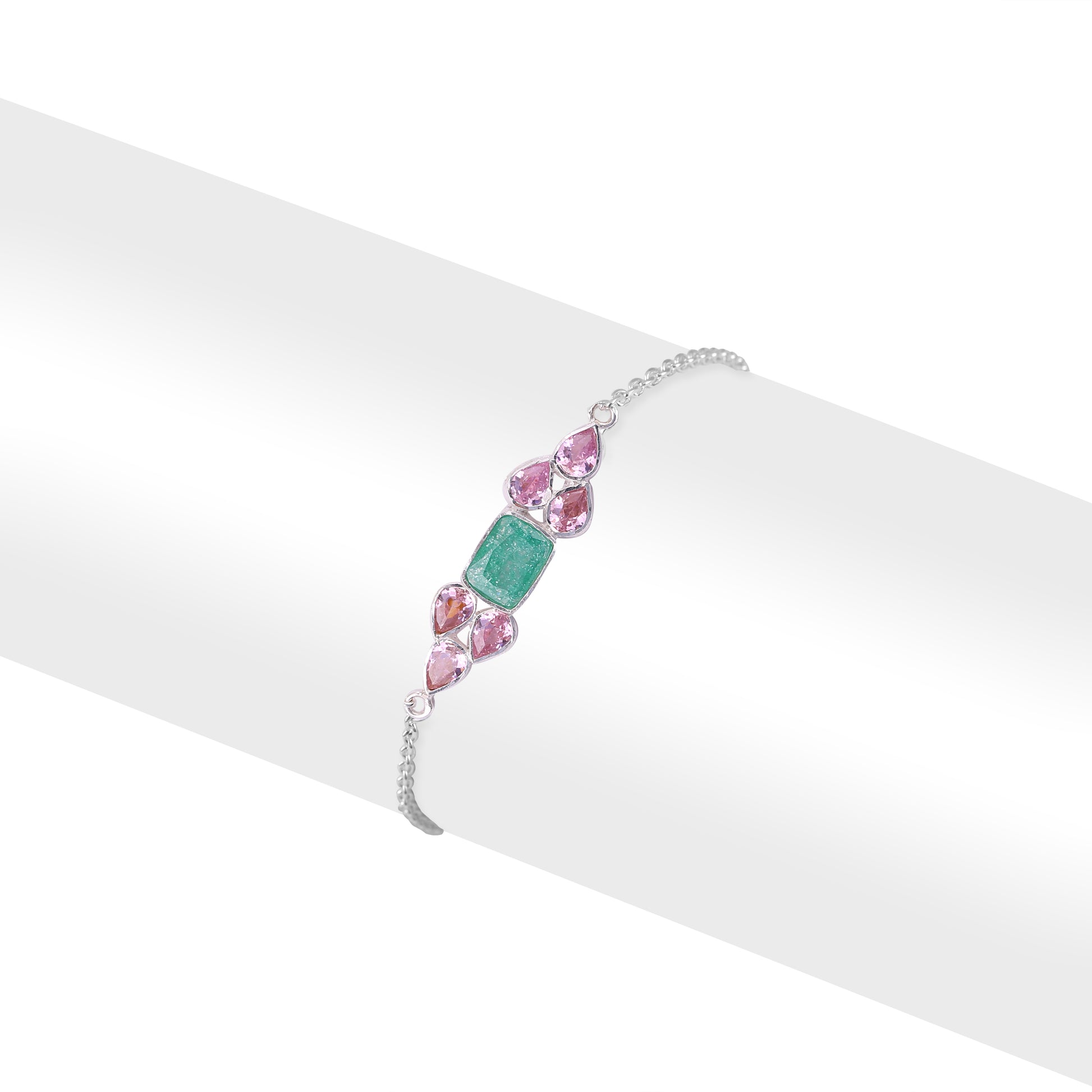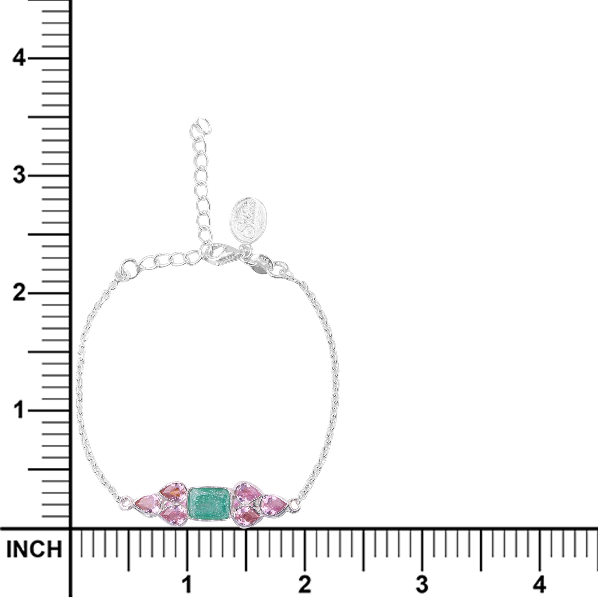 Where elegance meets a splash of colour. This stunning bracelet features a radiant mint green centrepiece, delicately framed by soft blush pink stones on each side. Set on a sleek silver toned chain, this piece is a dreamy blend of cool and warm tones that instantly uplift any outfit.