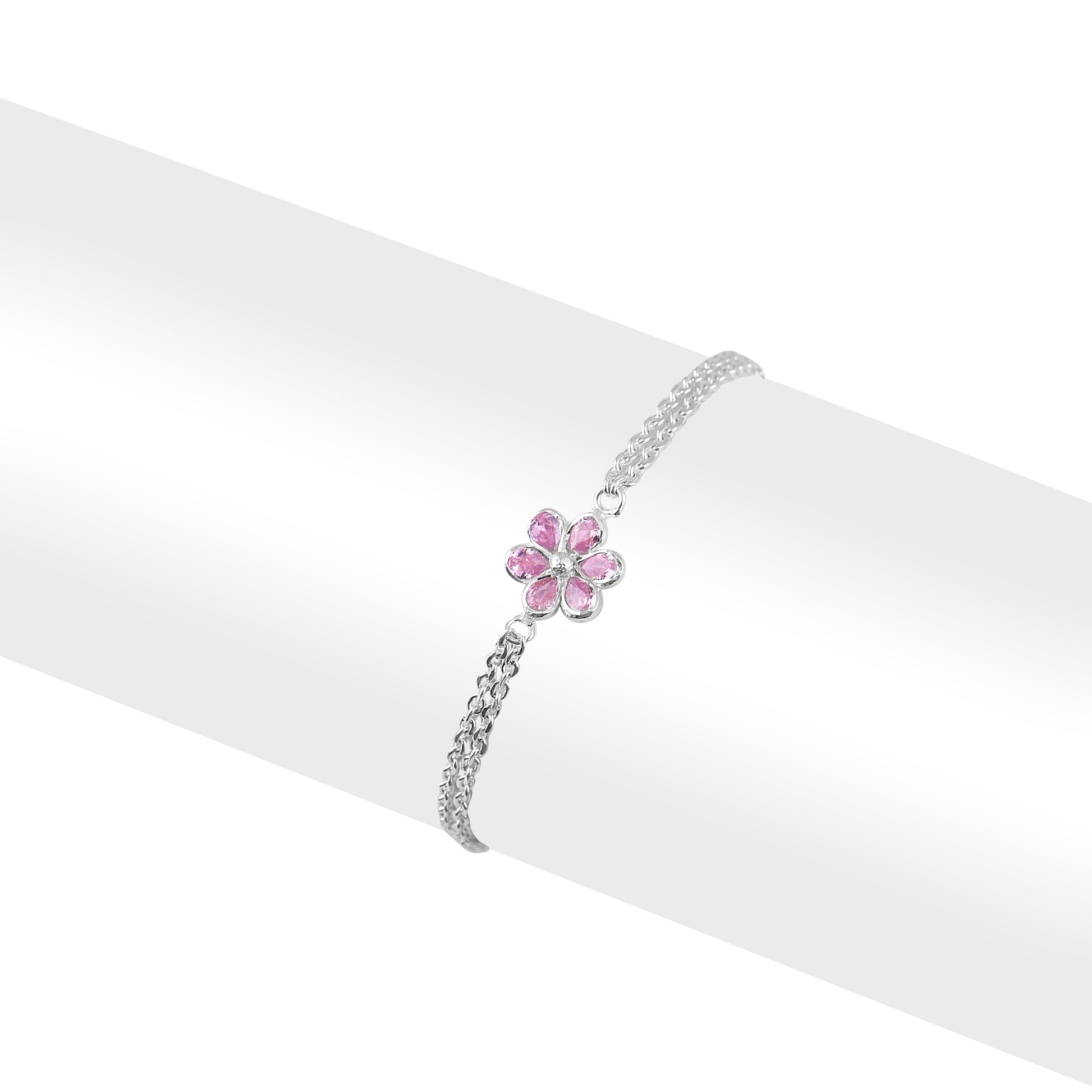 Let your style blossom with the gentle charm of The Bloom Bracelet. This beautifully delicate piece features a silver-toned chain and a stunning central pink flower charm that radiates softness, sweetness, and elegance. Each petal sparkles with subtle light, capturing the essence of spring in a wearable form.