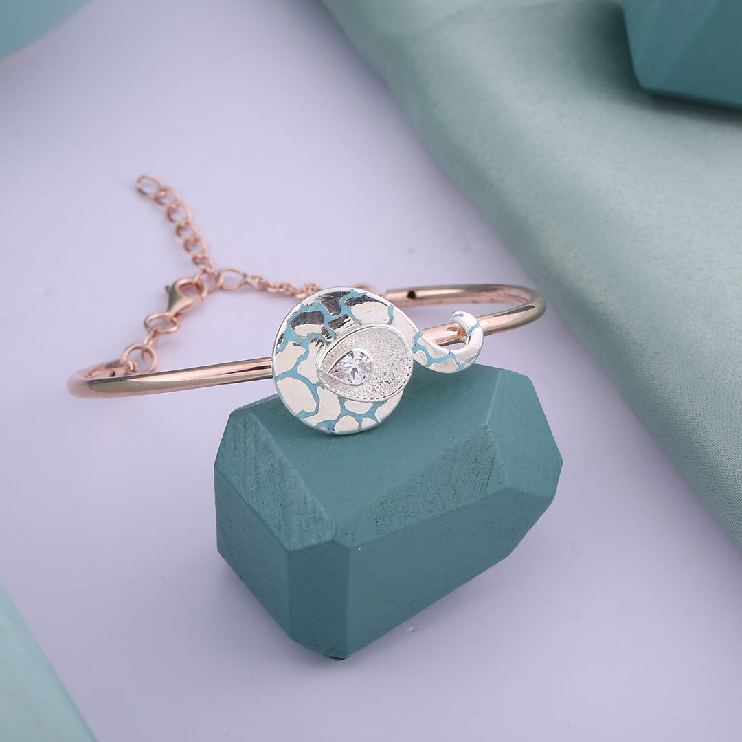 Features A Polished Abstract Design With Soft Curves And An Artistic Silhouette. Crafted In A Delicate Mix Of Silver And Rose Gold Tones, The Bracelet Centre's Around A Singular Crystal That Sparkles Gently Adding Just The Right Amount Of Brilliance Without Overwhelming.