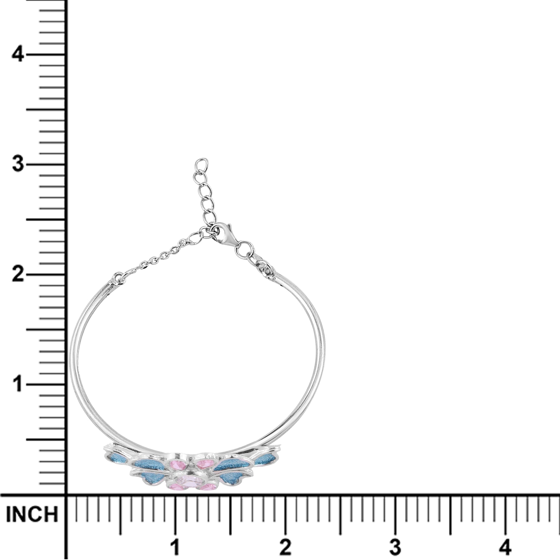 The Aqua Garden Cuff Bracelet features pastel blossoms in soft blue and pink with a touch of silver sheen, making it a refreshing addition to your collection. Its clean design keeps it modern, while the floral motif keeps it feminine.