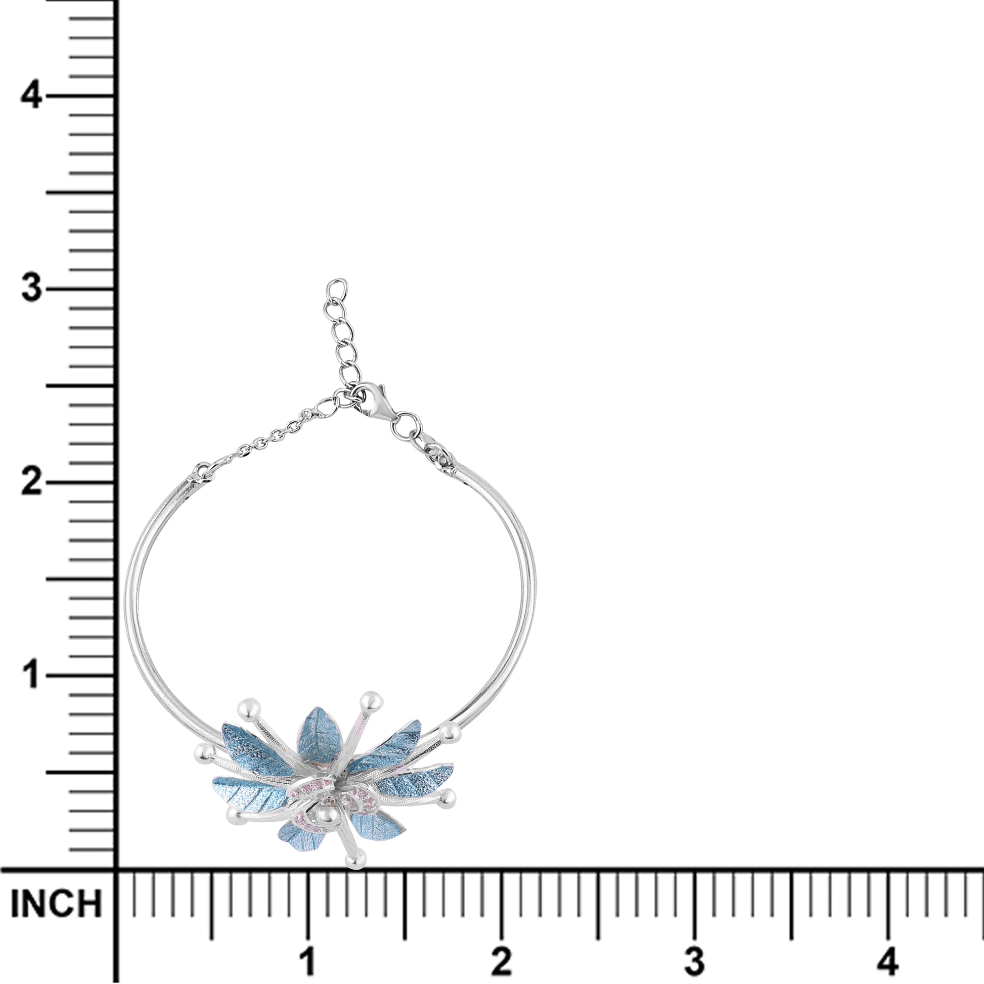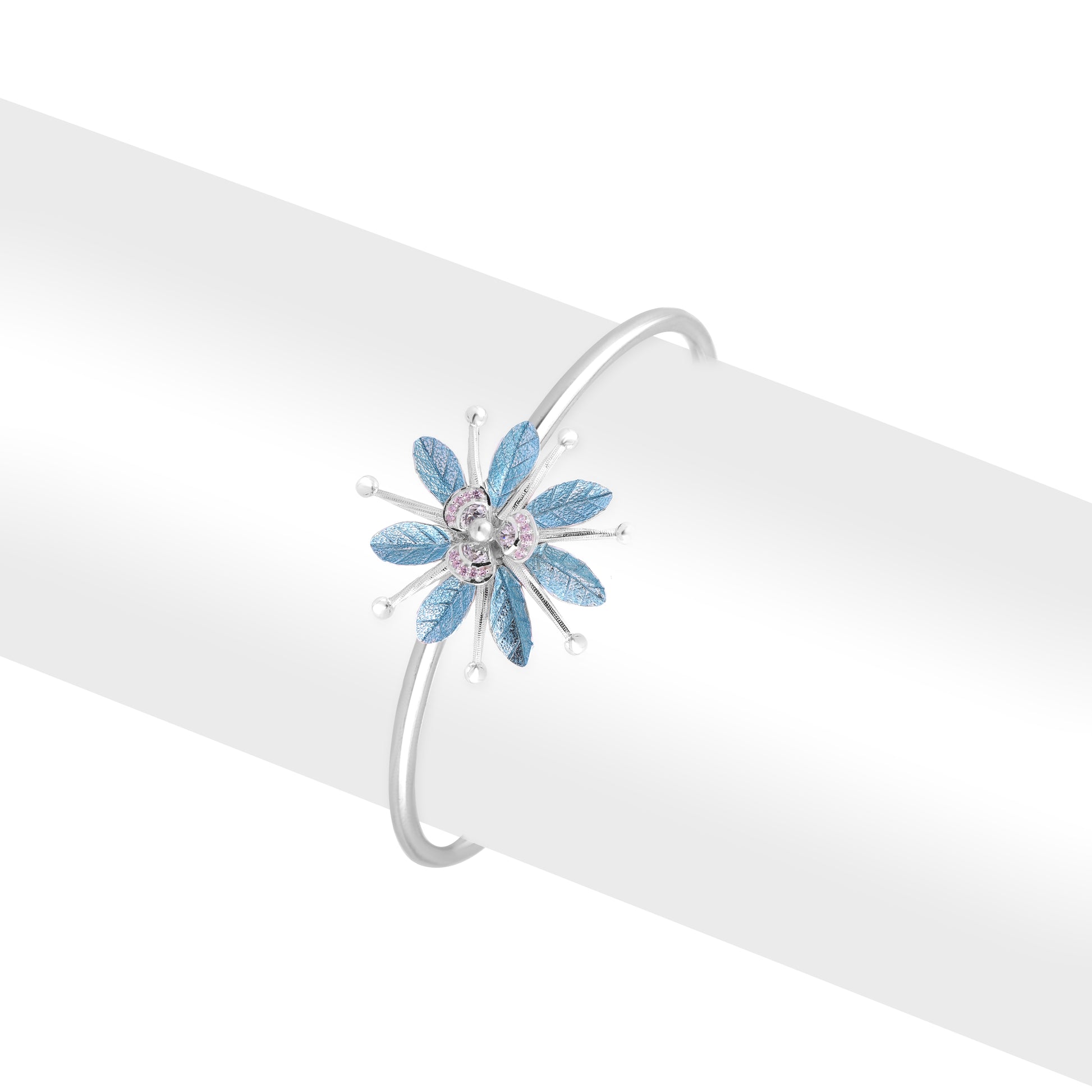 Command Attention with This Striking Bracelet Adorned with Sculpted Blue Petals, Crystal Studded Centres & Refined Silver Ball Details. A Blend of Organic Inspiration and Bold Artistry, It Radiates Confidence & Contemporary Flair.